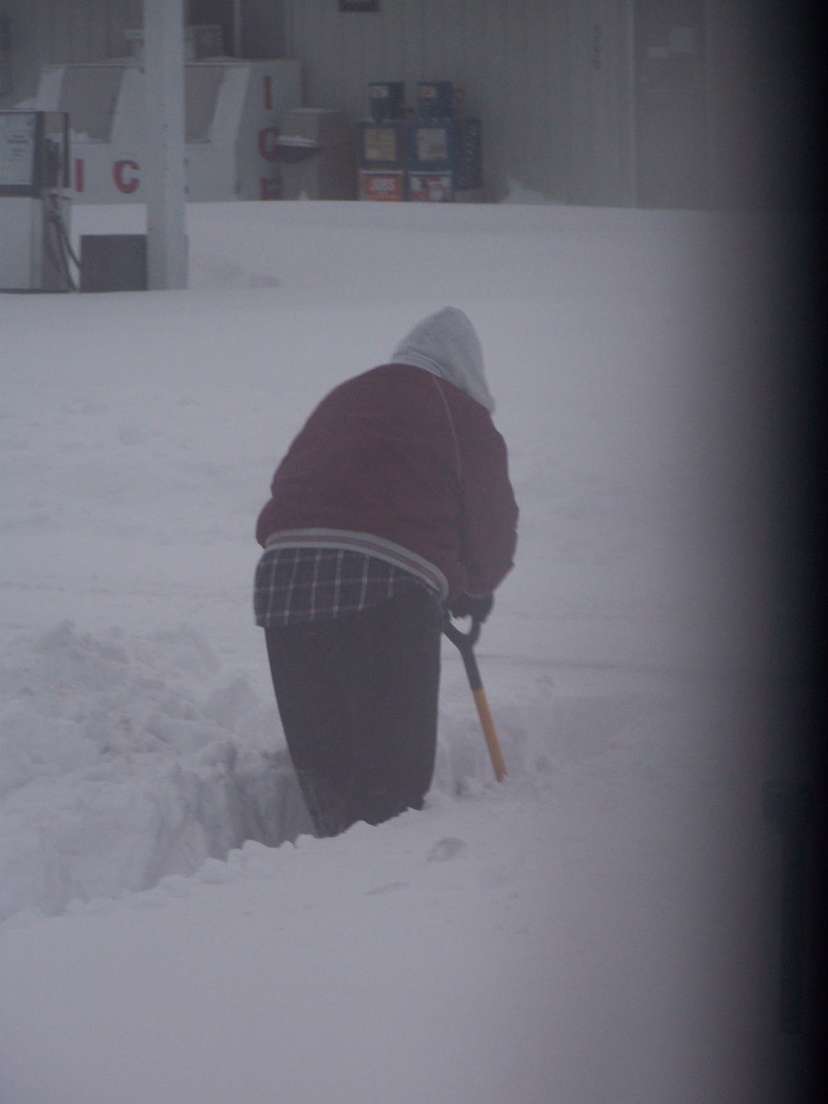I work at a newspaper office, a free trader publication, and our press day is Wednesday. I've been there for over 5 years and the one rule has always been "If you miss work on a Wednesday, it better be because you're dead". My supervisor, our receptionist and I are the only employees who live in town where the office is located. You guessed it! My supervisor and I were the only ones who were able to get to the office and it was hard work getting there! In the first two pics my wonderful hubbie is digging me a path to the road so I can catch a ride to the office! The bottom picture is what I found when I got there with one change.....there was no shoveled path and I had to climb over the snow to get in the door! You've heard of that fine line? I think I crossed it!! The good news is that another employee made it in around 3 that day and the three of us managed to get the paper to the press and I was back home by 8 pm.